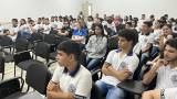 Com o auditório lotado de alunos e professores, a palestra intitulada "O diálogo é crucial na prevenção do suicídio: quebrando tabus e criando redes de apoio" foi conduzida pela psicóloga Graça Leal, junto com as voluntárias do Centro de Valorização da Vida (CVV), Maria Lúcia e Verônica Vera. Durante o evento, os estudantes participaram ativamente, fazendo perguntas e compartilhando depoimentos que demonstraram maturidade e empatia com o tema abordado.