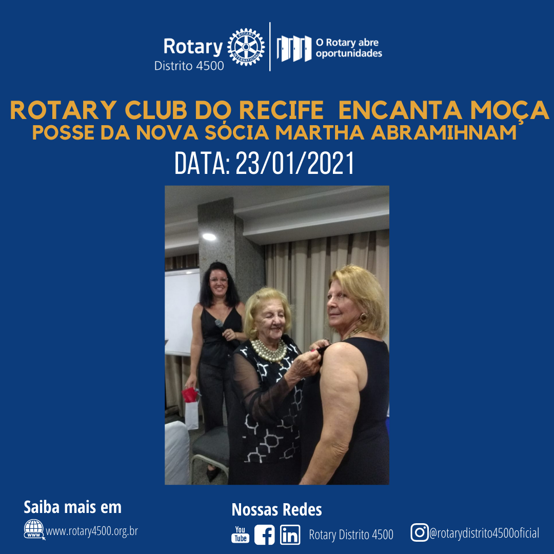 Ontem, durante a Reunião do Rotary Club Recife Encanta Moça, foi realizada a posse de nossa Companheira Martha Elizabeth Abramihnam de Souza.