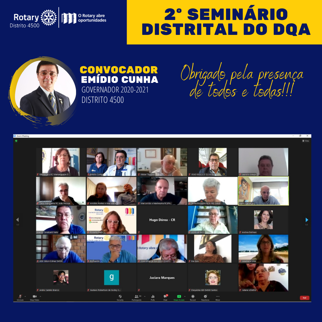 O Seminário contou com a abertura do nosso Governador do Distrito 4500 - Emídio Cunha, que ressaltou a importância da participação dos clubes, nos eventos patrocinados pelo distrito 4500.