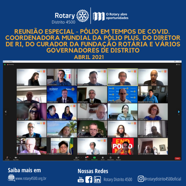 Reunião especial de celebração do Dia da Terra, com a presença do Presidente de RI, Diretor Mário Cesar Camargo e Curador da Fundação Rotária Marcelo Haick