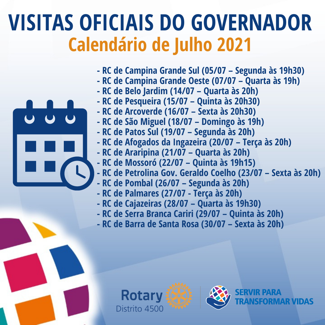 VISITAS OFICIAIS DO GOVERNADOR - Calendário de Julho 2021