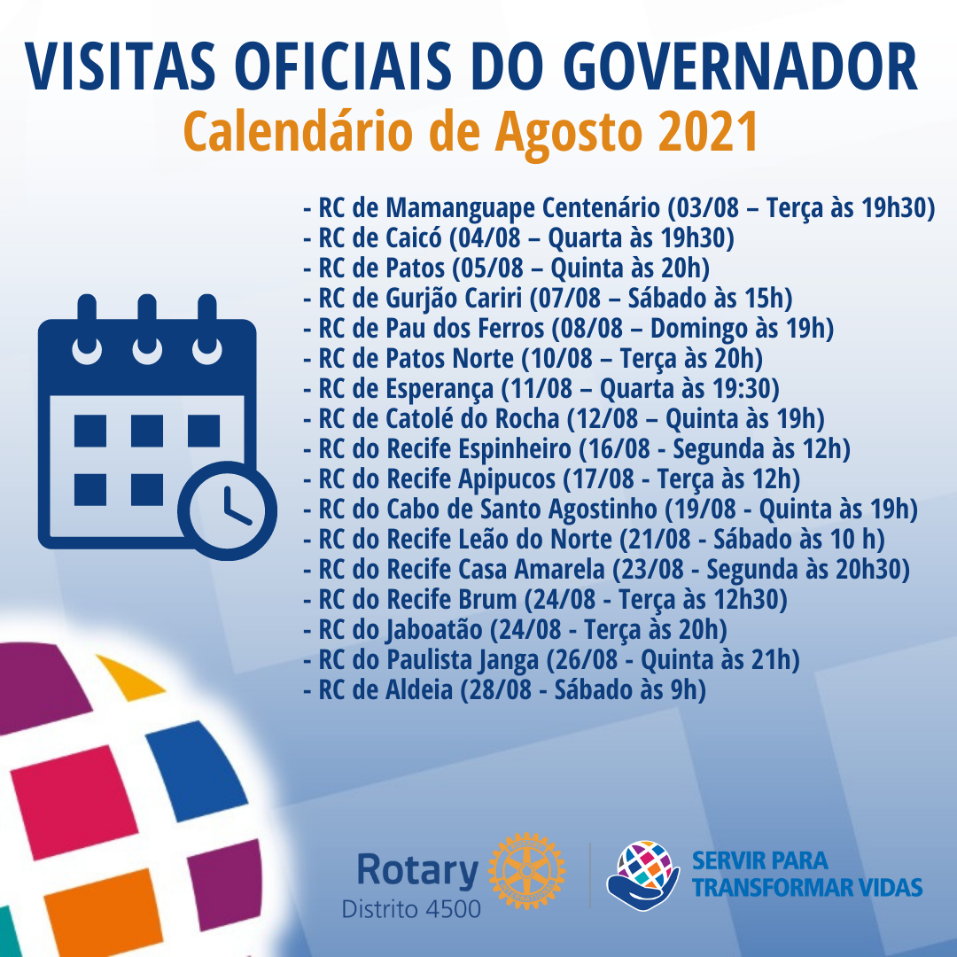 VISITAS OFICIAIS DO GOVERNADOR - Calendário de Agosto 2021
