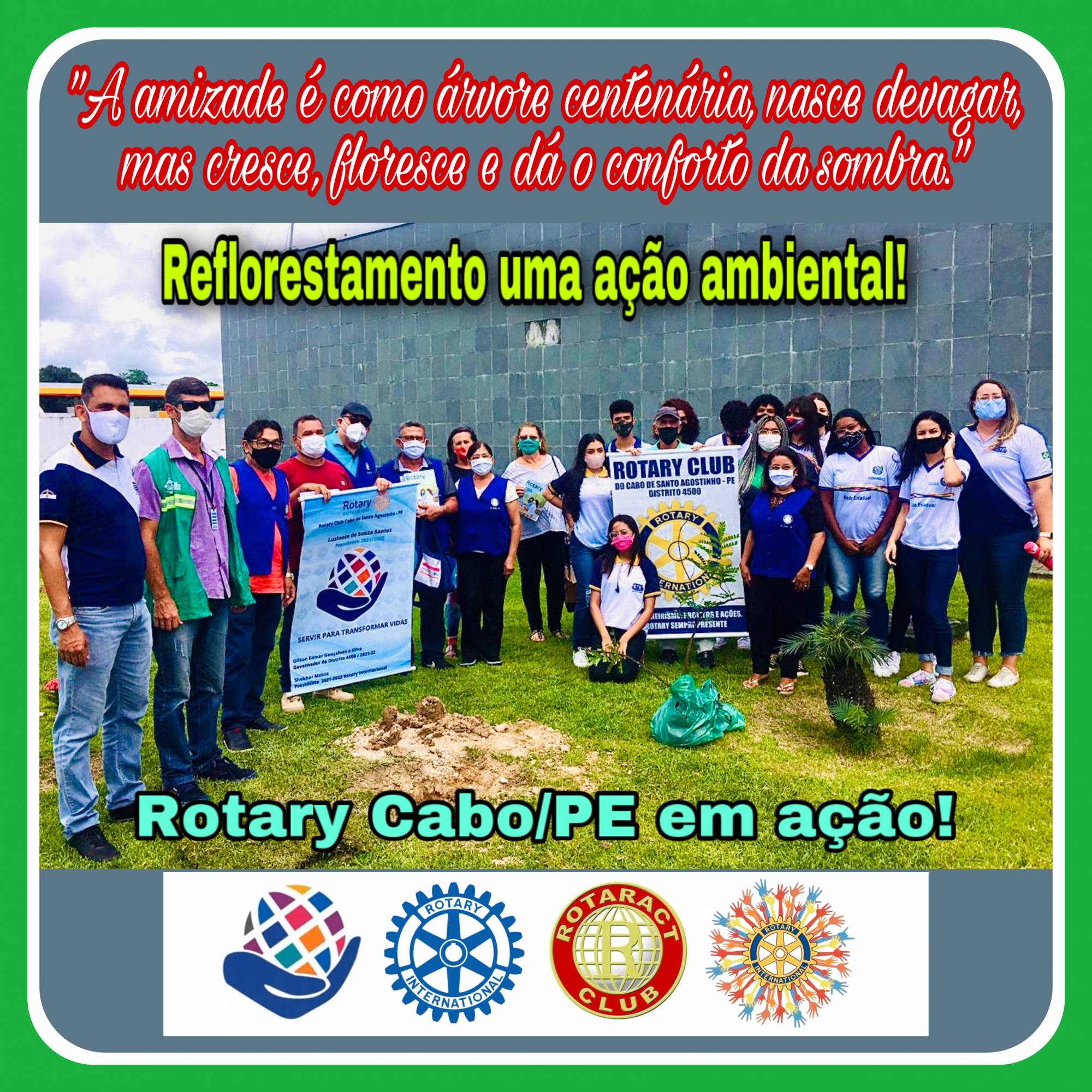 O Rotary Clube Cabo de Santo Ago em parceria com a Prefeitura Municipal do Cabo de Santo Agostinho, através da Secretaria do Meio Ambiente e da Escola Técnica Estadual Professor Luiz Lacerda, realiza em 29/09/2021,