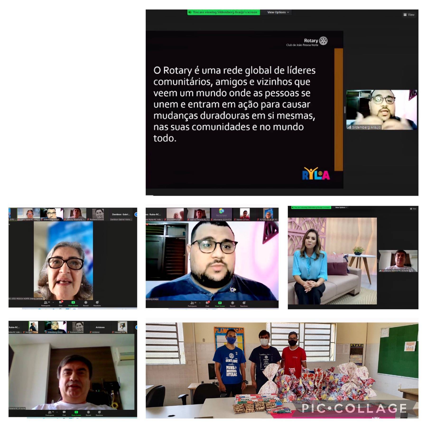 Em 24 de setembro o Rotary Club de João Pessoa Norte realizou, no formato virtual, o Programa RYLA na Escola Cidadã Integral Técnica Maria do Carmo de Miranda - ECIT em João Pessoa, com excelentes palestras proferidas pelos companheiros Fernanda Albuquerque (motivacional), e Sildemberg Araujo (O que é Rotary) destacando suas experiências nos Clubes de Rotary que integrou, cujas palestras atraíram a atenção e interesse de mais de 90 alunos da escola sede do RYLA.