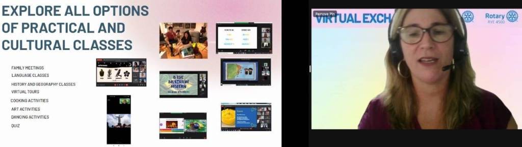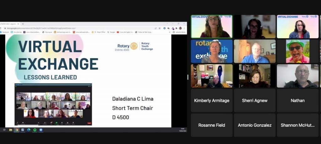 O Distrito 4500 foi convidado para apresentar o Programa de Intercâmbio Virtual de Jovens, através da Chair do Programa de Intercâmbio de Curta Duração, Daladiana Cunha Lima – RC Natal Reis Magos. Esse novo formato de intercâmbio está tendo todo o apoio do Rotary International e nosso distrito vem se destacando com um programa muito bem organizado. O programa de intercâmbio de jovens no formato virtual oferece aos jovens a oportunidade de conhecer uma nova cultura e de fazer novas amizades sem precisar viajar porque todas as atividades são realizadas em plataformas online. Além da companheira Daladiana, a equipe do programa de intercâmbio virtual, conta com a participação dos companheiros Álvaro Campello – RC Petrópolis, Suzana Sampaio – RC de Recife, além dos jovens que integram a organização Rotex D 4500.