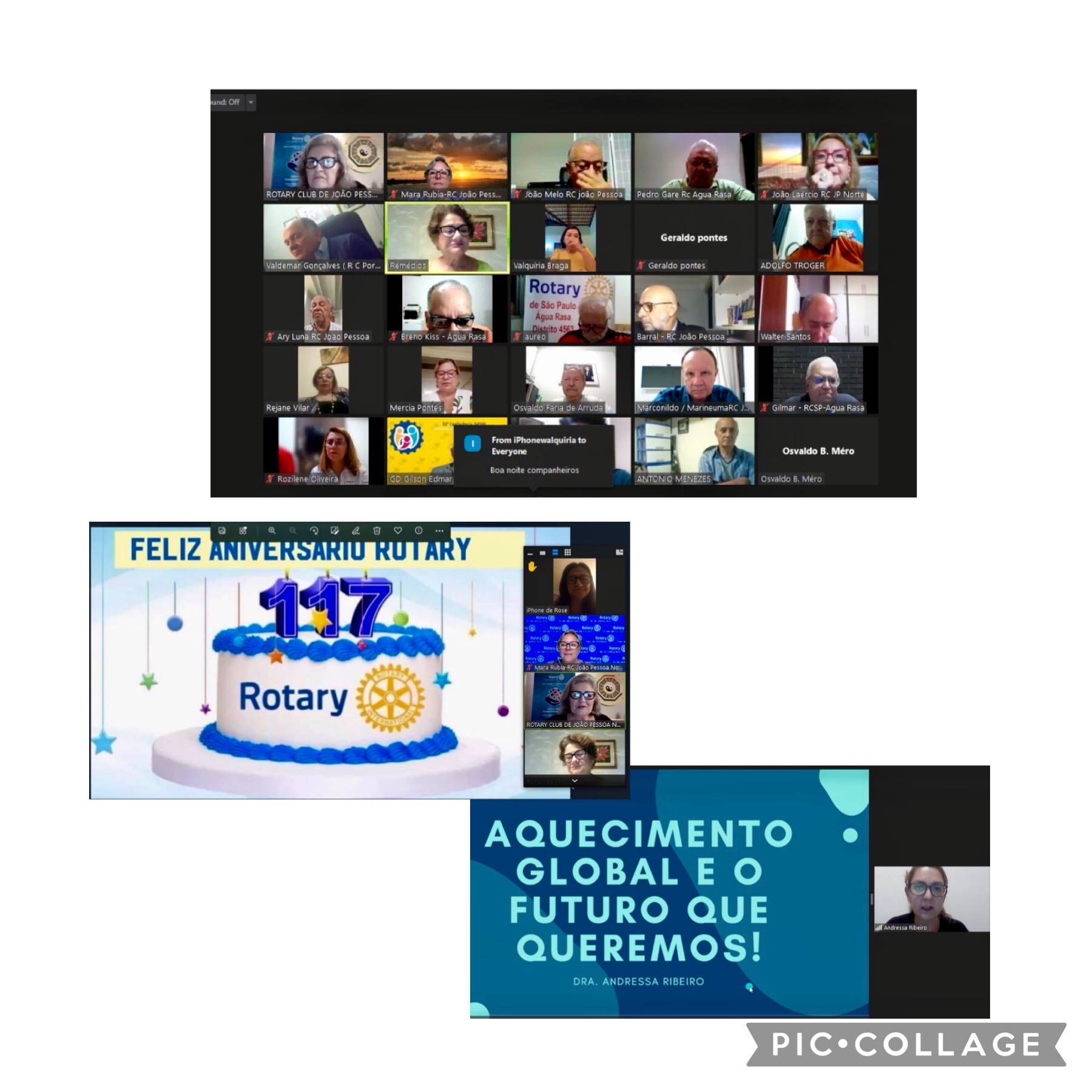 Por fim, a reunião foi encerrada com bolo simbólico dos 117 anos de RI e um alegre companheirismo virtual com todos cantando o PARABÉNS PARA VOCÊ!