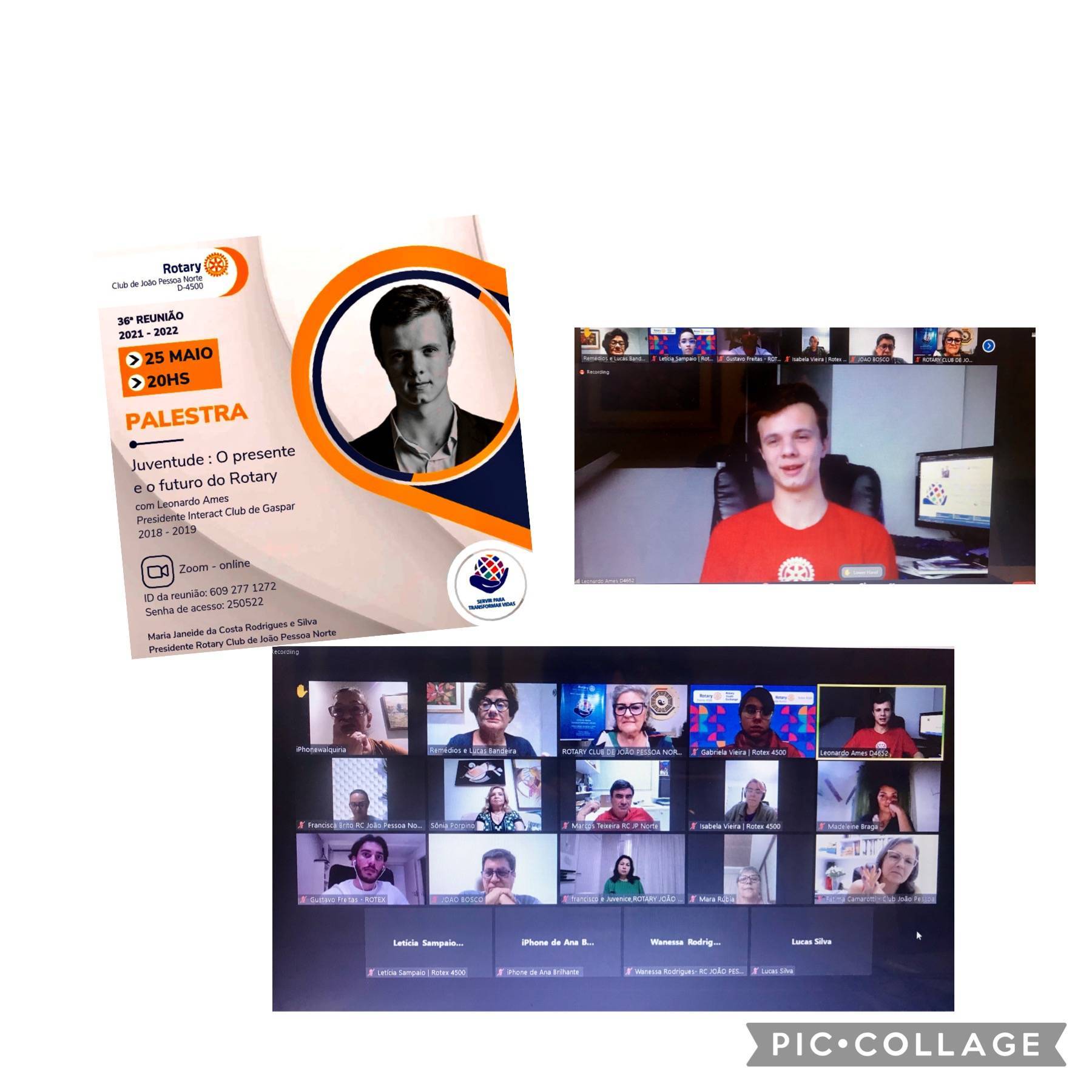 Na reunião ordinária ocorrida em vinte e cinco de maio, encerrando o mês dedicado aos “Serviços à Juventude” o Rotary Club de João Pessoa Norte homenageou a juventude rotária com a palestra do jovem Leonardo Ames do Rotaract Club de Gaspar/SC D4652 que abordou o tema “Juventude: O presente e o futuro do Rotary”.