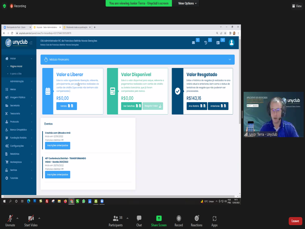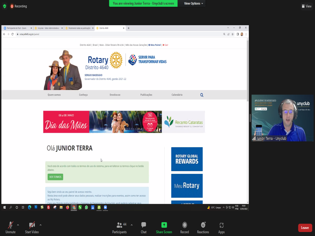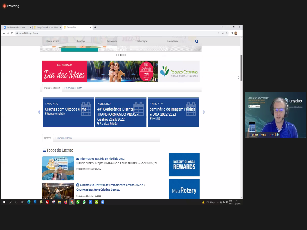 No mês de maio, nos dias 11/05 e 12/05 tivemos duas oficinas UNYCLUB, on line, com o companheiro Júnior Terra, do Distrito 4640. As oficinas fazem parte da programação de treinamentos on line, planejada pela Governadora Eleita 2022-23, Elequicina Santos, para incentivar que os clubes adotem o sistema UNYCLUB como ferramenta de gestão, passando a alimentar as informações dos clubes no sistema.