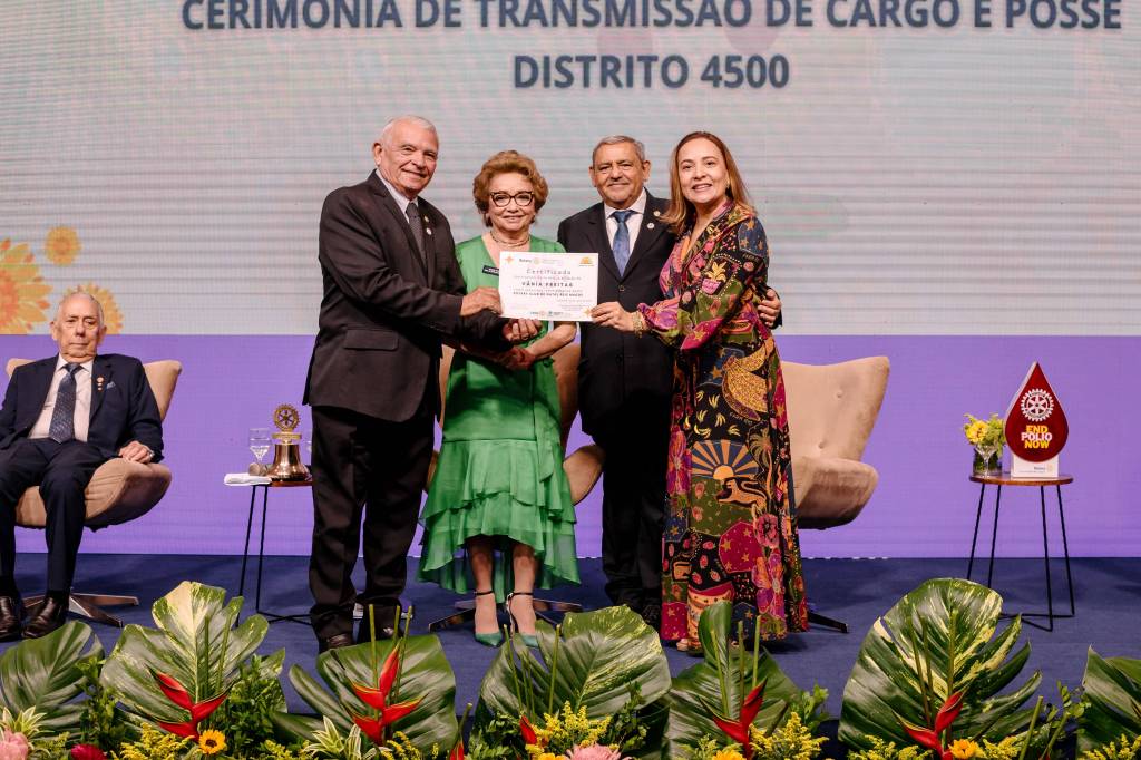 Na sequência, a cerimônia também abriu espaço para dar posse, simbolicamente, à equipe que vai auxiliar a Governadora Elequicina Santos na gestão 2022-23 do Distrito4500. São 31 Governadore/as Assistentes, que se subdividem em áreas para atender a mais de um clube, cada um. O/As Gov. Assistentes têm a função de serem intermediadores entre a Governadoria e os clubes, ajudando-os a se organizarem, definirem suas metas e alcançarem seus objetivos, norteados pelas diretrizes do distrito. Também levam demandas dos clubes para a Governadoria, facilitando sua aproximação. Além dos Gov. Assistentes, temos toda a equipe distrital, formada por rotariano/as e rotaractiano/as de diversos clubes do distrito, para ocupar as funções de secretaria, tesouraria e as diversas comissões que compõem a administração distrital: juventude, imagem pública, meio ambiente, capacitação, fundação rotária, projetos humanitários, desenvolvimento do quadro associativo, diversidade, equidade e inclusão, etc. Toda essa equipe está à disposição dos clubes, para ajudá-los a realizar seus projetos e causar ainda mais impactos positivos em suas comunidades.