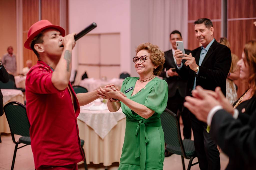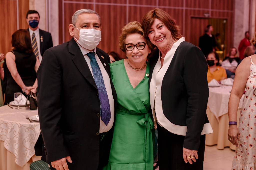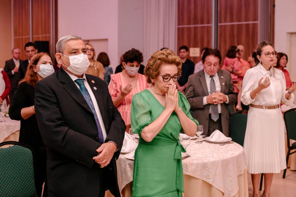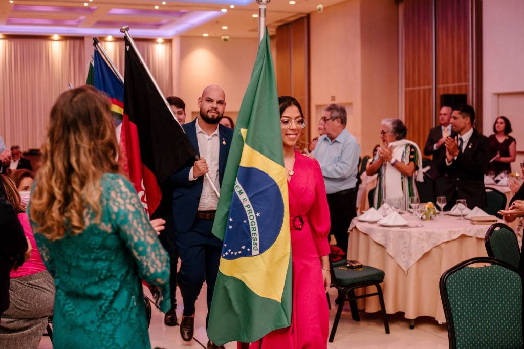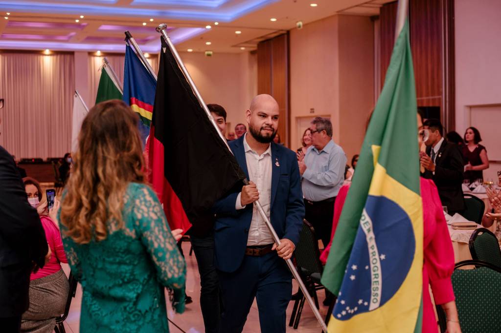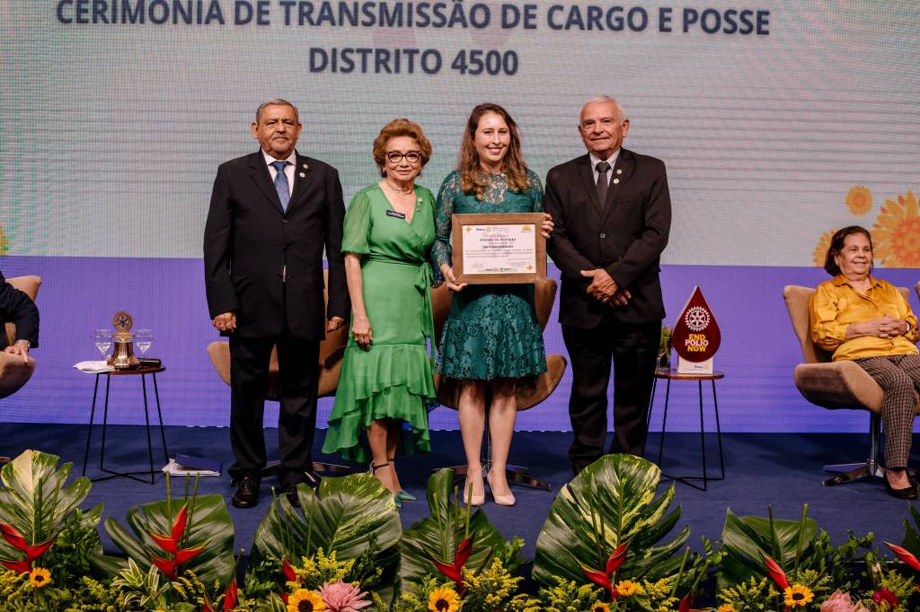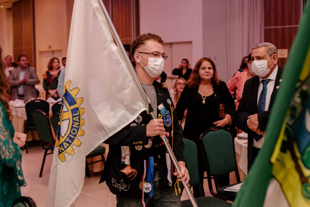 Também houve um momento simbólico de investir no cargo os novos Presidentes de clubes que puderam estar presentes na ocasião. O Presidente 2022-23 do RC de Natal Reis Magos, clube da Governadora Elequicina Santos, companheiro Geraldo França, prestou juramento em nome de todos os demais presidentes de clubes. Recebeu também, das mãos do Presidente do Rotary Club do Recife Boa Vista, clube do Governador Gilson Edmar, companheiro Marcos Pontes, a bandeira distrital que identifica o Clube do Governador. Na sequência, a cerimônia abriu espaço para os clubes realizarem a admissão de novo/as associado/as. O Rotary Club de Natal Reis Magos conferiu à companheira Débora de Oliveira o certificado de ASSOCIADA HONORÁRIA do clube, por seus relevantes serviços prestados ao Rotary International, sobretudo sua atuação junto ao Rotary Brazil Office – RIBO, sempre prestando consultorias e auxiliando os clubes a se aprimorarem. Também tivemos admissão de ASSOCIADOS REPRESENTATIVOS. A companheira Vânia Freitas, como associada ao Rotary Club de Natal Reis Magos, e os companheiros Flaucio Júnior e Felipe Penaforte, associados ao Rotary Club de Surubim Centro, sob Presidência do companheiro Luca Fabrício.