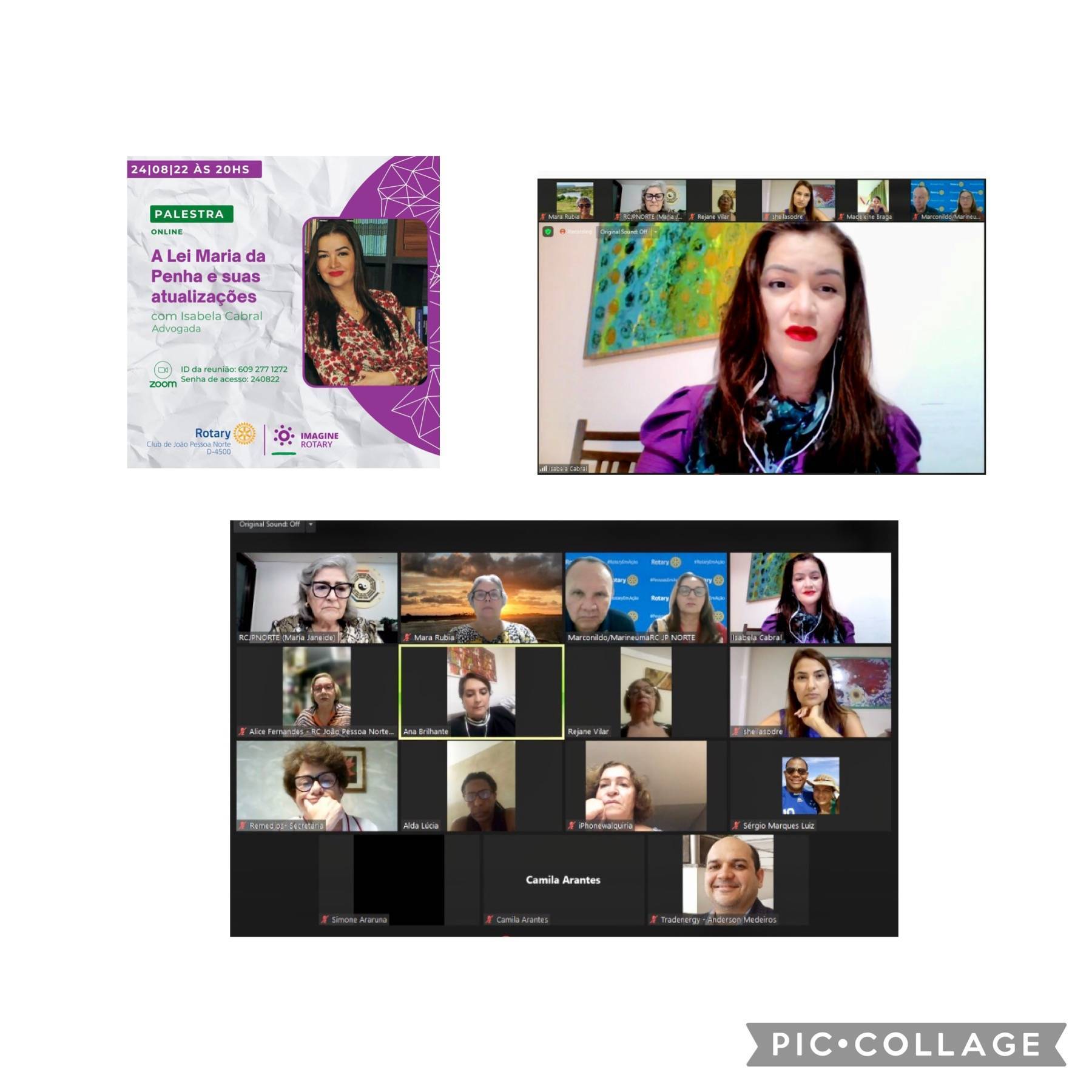 A oitava reunião ordinária do Rotary Club de João Pessoa Norte realizada na noite de hoje, no formato virtual, teve como momento especial a palestra da advogada Isabela Cabral sobre "A Lei Maria da Penha e suas atualizações".