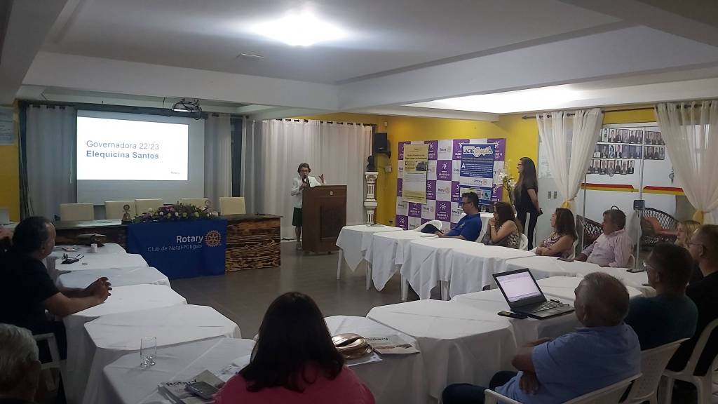 E retornando do 45º Instituto Rotary, a Governadora Elequicina Santos retomou a agenda de visitas pelo Rotary Club de Natal Potiguar, Presidente 2022-23 Helen Dutra. A visita ocorreu à noite, na sede ASROCAN – Associação dos Rotarianos e Casa da Amizade de Natal/RN. Durante a reunião, a Presidente Helen apresentou as metas e planejamento do clube para o ano. A Governadora Elequicina apresentou as propostas para aquisição de Títulos Paul Harris pelo clube e sobre a aquisição da jóia para a campanha END POLIO NOW. Tivemos ainda a presença dos intercambistas: Sofia Mudoy (USA), Sophia Casper (Alemanha), Carlos Fascinetto (México). Registramos também a presença do Governador Assistente, João Augusto Araújo. Após a reunião, todo o grupo foi jantar no restaurante Nau.