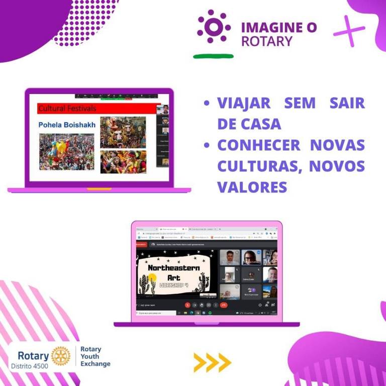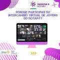O programa de intercâmbio virtual surgiu durante a pandemia, como uma forma de integrar estudantes de diversas culturas, mesmo à distância. Diante da grande adesão ao programa pelo mundo, o Rotary decidiu manter a oferta deste formato. É uma excelente oportunidade de treinar o aprendizado em outra língua e ainda conhecer outras culturas, fazer amizades, mesmo utilizando apenas o ambiente virtual. O programa também é acompanhado pelas equipes de intercâmbio do Rotary Youth Exchange (RYE) do Distrito 4500. A equipe recepciona os estudantes, organiza os encontros e orienta as atividades, promovendo a troca de experiências entre os estudantes.