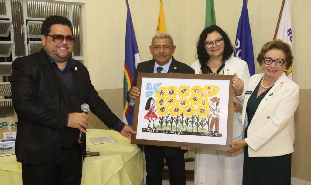 A reunião plenária se seguiu após este ato, tendo sido um momento de grande celebração pelos 52 anos do clube. A Governadora recebeu o quadro PLANTIO DE GIRASSÓIS do artista J. BORGES e também o título MEMBRO DE HONRA DA ASARESFA - Associação dos Amigos e Reservistas das Forças Armadas do 14° BI Mtz.entregue por Mário Viana da Silva Botelho - Presidente de Honra e Fundador. Registramos a presença da Governadora Assistente, Julia Chalegre.
