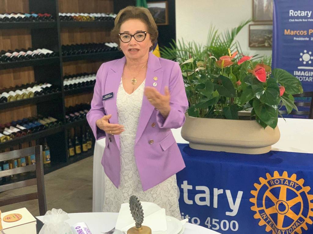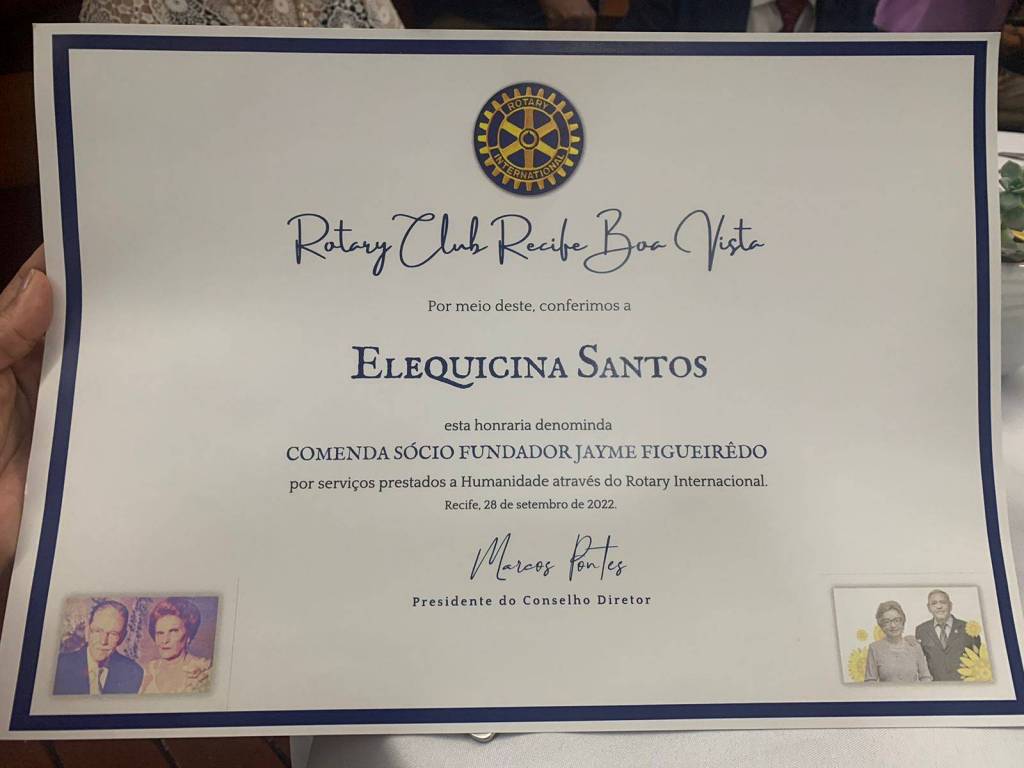 A reunião plenária com o clube foi realizada à noite, onde registramos a presença também do Governador Eleito 2023-24 José Miranda. A Governadora Elequicina recebeu a Comenda Sócio Fundador Jayme Figueiredo pelos serviços prestados à Humanidade através do Rotary Internacional.