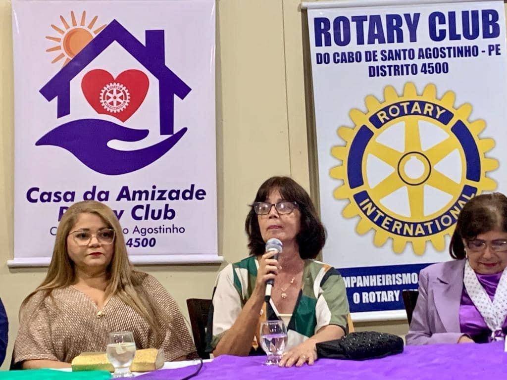 Depois de receber o distintivo da presidente da Casa da Amizade RC Jaboatão / Centro, Aldenise Souza. A Presidente Maria Cristina colocou o distintivo nas demais associadas do Conselho Diretor, logo após, fez a sua fala destacando o papel das mulheres que farão ações dentro das comunidades do município, finalizando agradeceu ao RC Cabo pela iniciativa de criar a Casa da Amizade e a confiança depositada em sua pessoa.