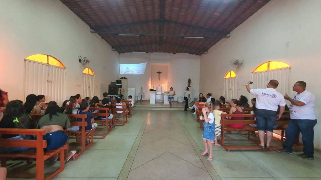 Foi exibido um filme infantil “Sing – Quem Canta Seus Males Espanta”, durante o filme foram distribuídos sorvetes e pipocas para a meninada. Logo após a sessão de cinema, os rotarianos com a ajuda da associação da comunidade local, distribuíram cachorro quente, refrigerante e uma sacolinha cheia de guloseimas.