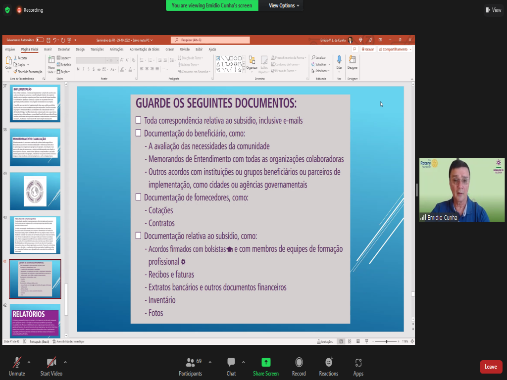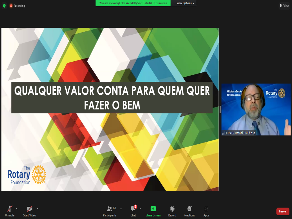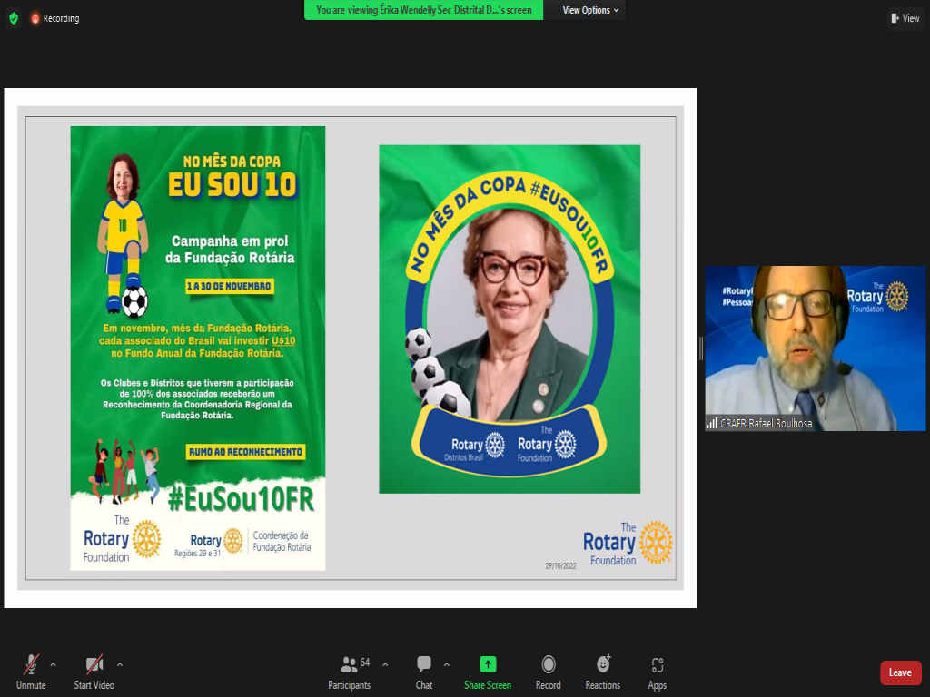 Fechando os eventos do mês de outubro, tivemos hoje pela manhã o Seminário da Fundação Rotária on line.