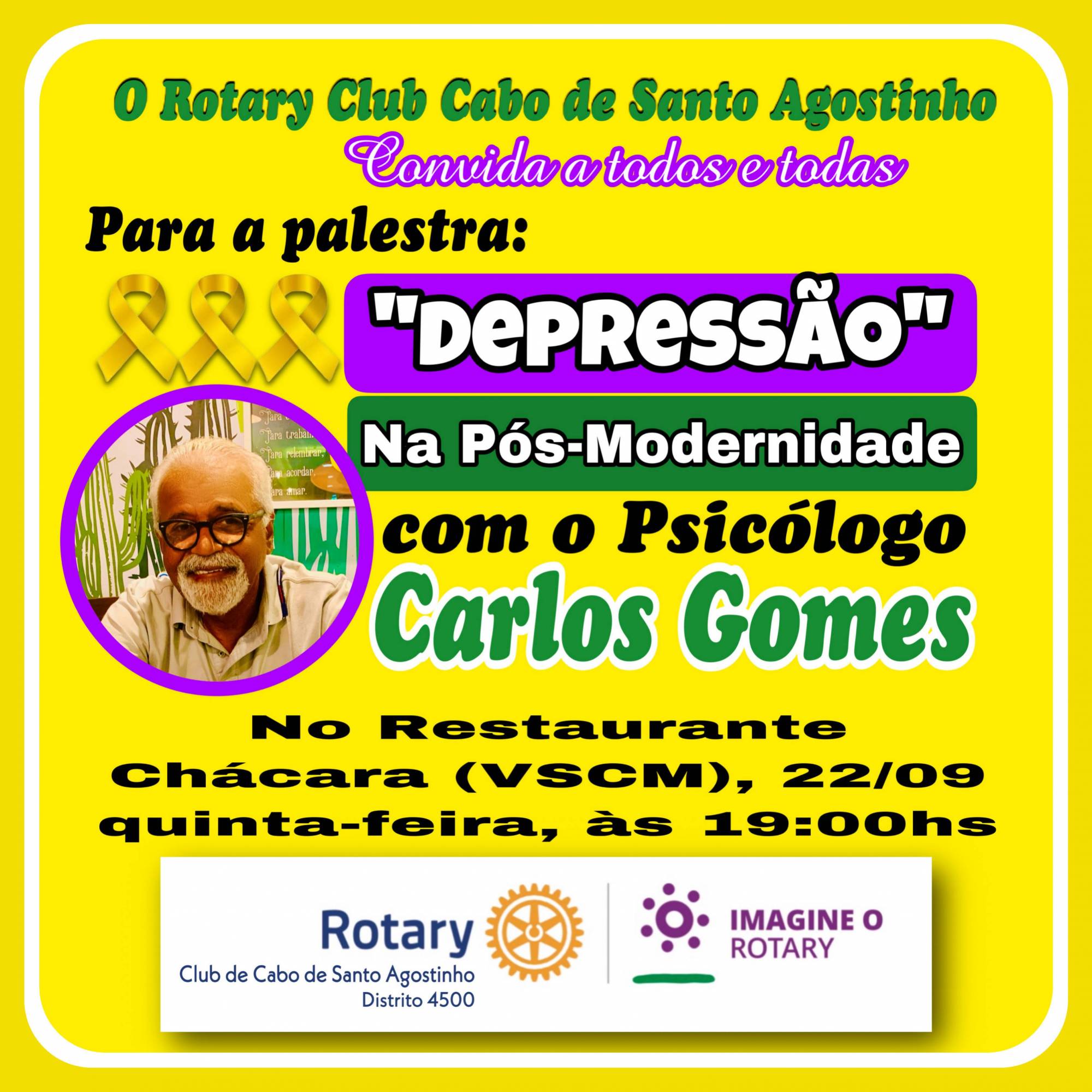 Em 22 de Setembro de 2022, o Rotary Club de Cabo de Santo Agostinho, presidido pelo médico João Sávio, biênio 2022/23, brindou aos companheiros e companheiras com a belíssima palestra, proferida pelo psicólogo, escritor e poeta Carlos Gomes.