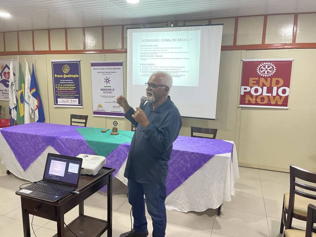 O qual de forma brilhante abordou a depressão como uma patologia social moderna, que transita na sociedade tradicional e dentro da pós-modernidade, a despeito do mal-estar decorrente da mesma, onde o palestrante fez uma análise bibliográfica com foco na teoria psicanalítica em busca da etiologia na diferenciação entre luto, melancolia e depressão de forma a buscar um detalhamento maior, por ser a depressão chamada de Mal do Século 21, pela Organização Mundial da Saúde, mostrando todo o contexto de correlação com outras psicopatologias, onde trouxe ensinamentos importantíssimos para toda a família rotária.