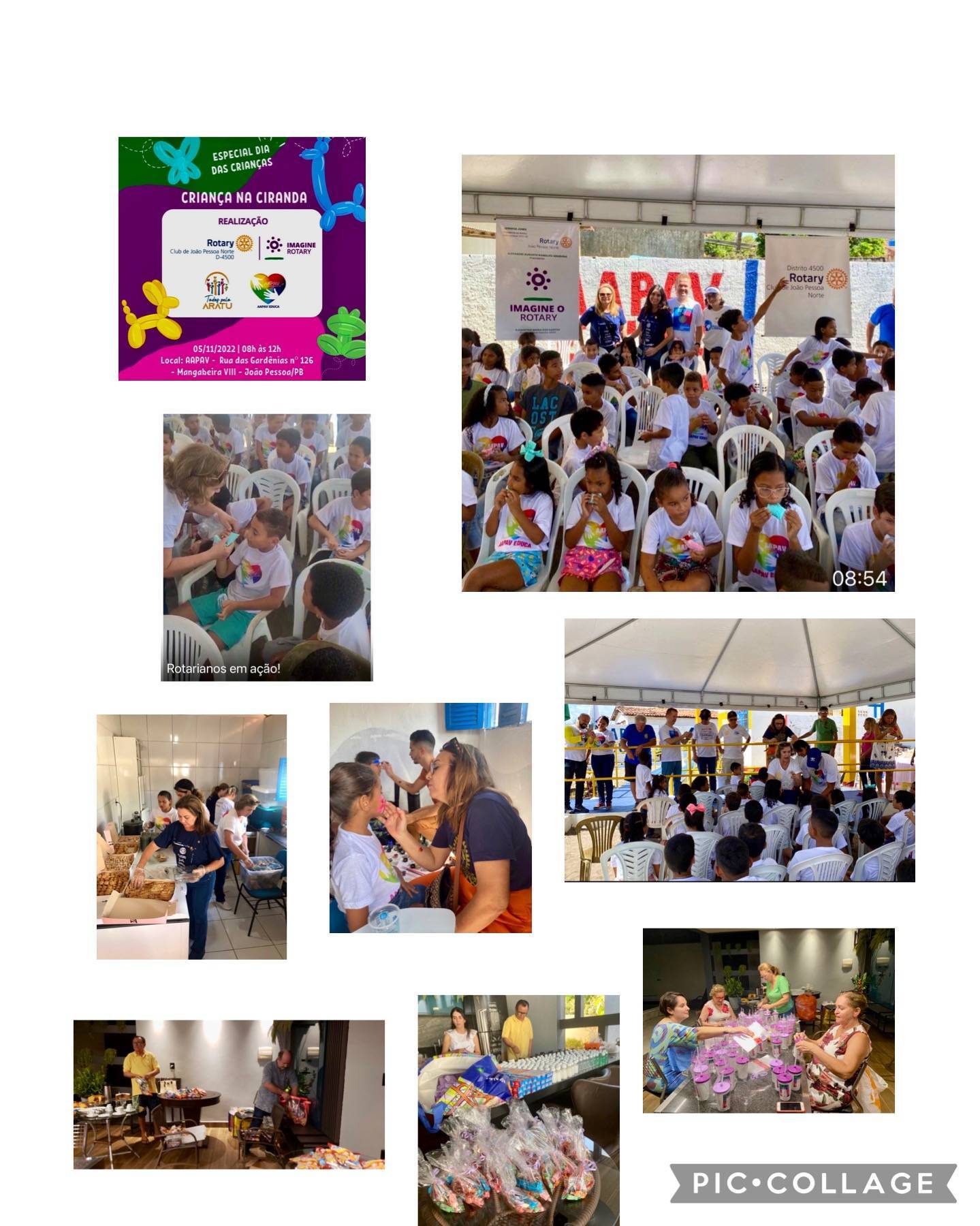 A comissão de Projetos Humanitários do Rotary Club de João Pessoa Norte, sob a coordenação da companheira Juvenice, idealizou, programou e realizou na manhã do dia 5 de novembro a ação social “Criança na Ciranda” para comemorar o dia das Crianças com 105 crianças da comunidade Aratu e adjacências, assistidas pela entidade AAPAV - Acolher para a Vida.