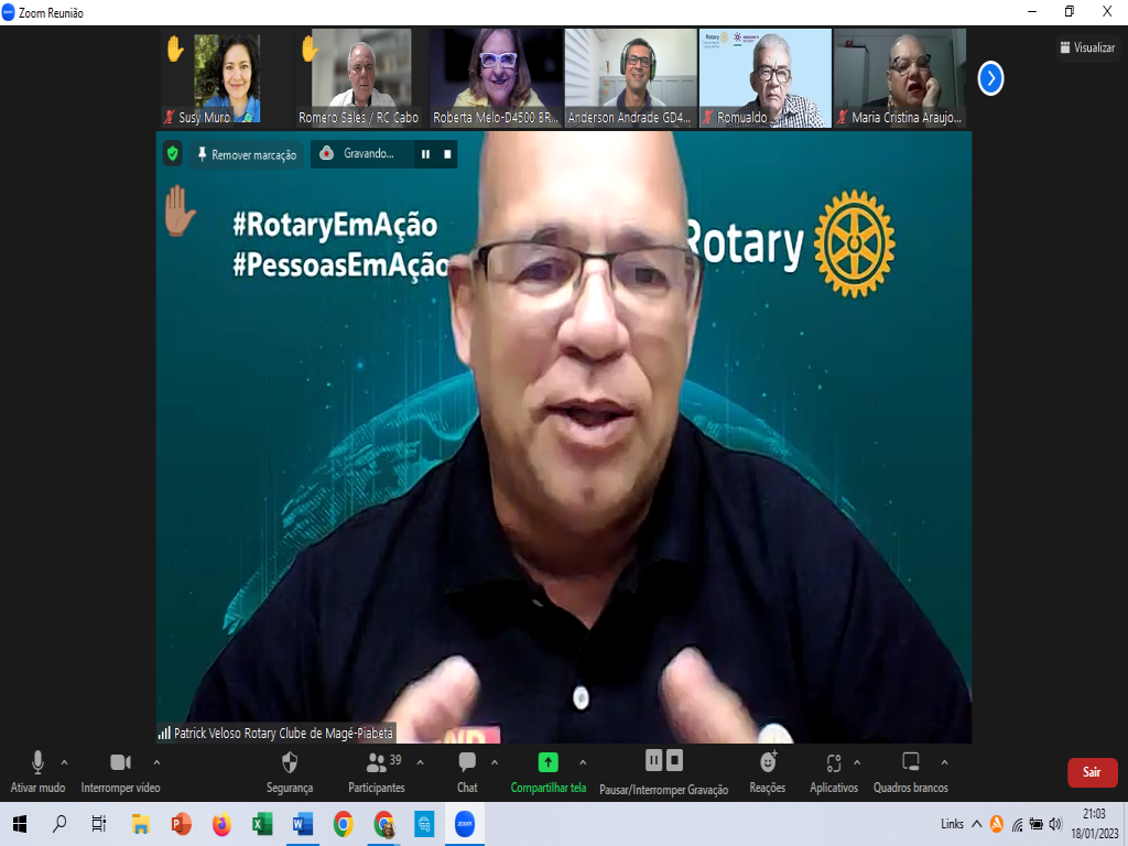 Na última quarta-feira 18/01/23 fizemos um Encontro Interclubes de Verão, evento virtual proposto pelo Rotary Club do Recife Largo da Paz e abraçado pelo Distrito 4500, para abranger os diversos clubes do distrito a participarem da excelente palestra do Governador 2022-23 Distrito 4751 Anderson Charles Andrade, com o tema AFINAL DE CONTAS, POR QUE FAZER PARTE DE UM ROTARY CLUB?