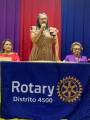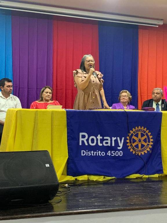 À noite foi o momento da reunião plenária com todos os membros do clube, na qual a Governadora presenteou com um pin o Presidente do Rotary Kids de Catolé do Rocha, João Guilherme.