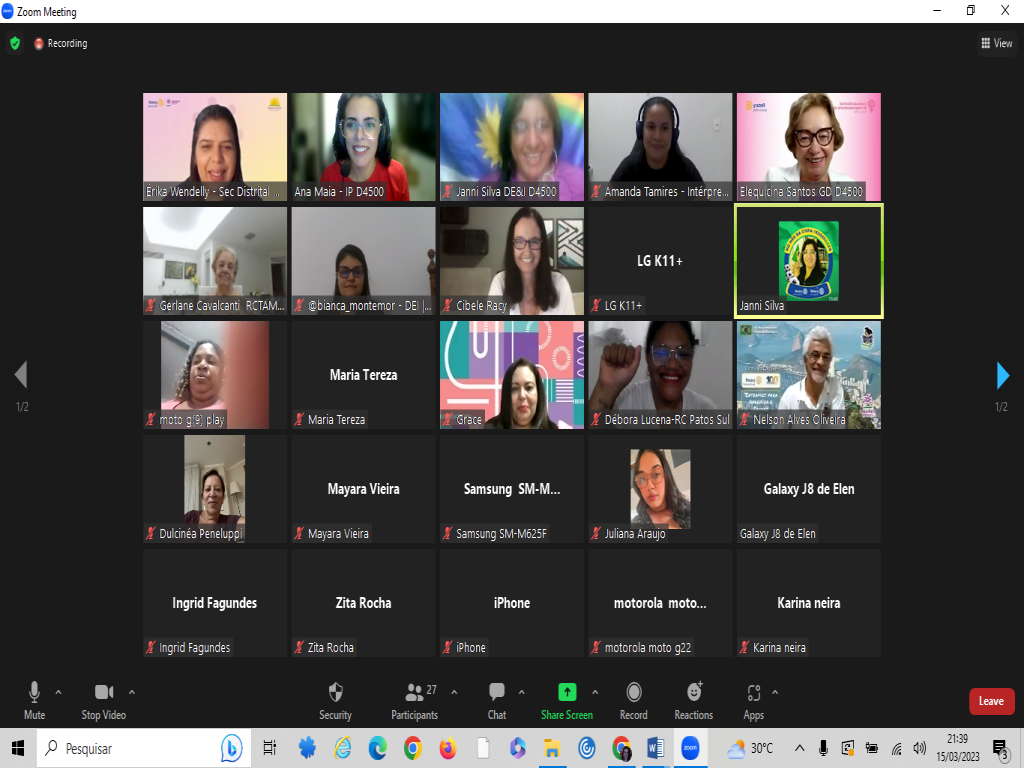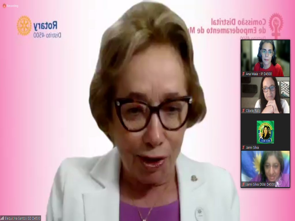 Na quarta-feira, 15/03, a Comissão Distrital de Diversidade, Equidade e Inclusão (D.E.I.), presidida pela companheira Janni Silva, Rotary Club de Santa Cruz do Capibaribe-Capital da Moda, realizou um evento on line, em celebração ao Dia Internacional da Mulher.