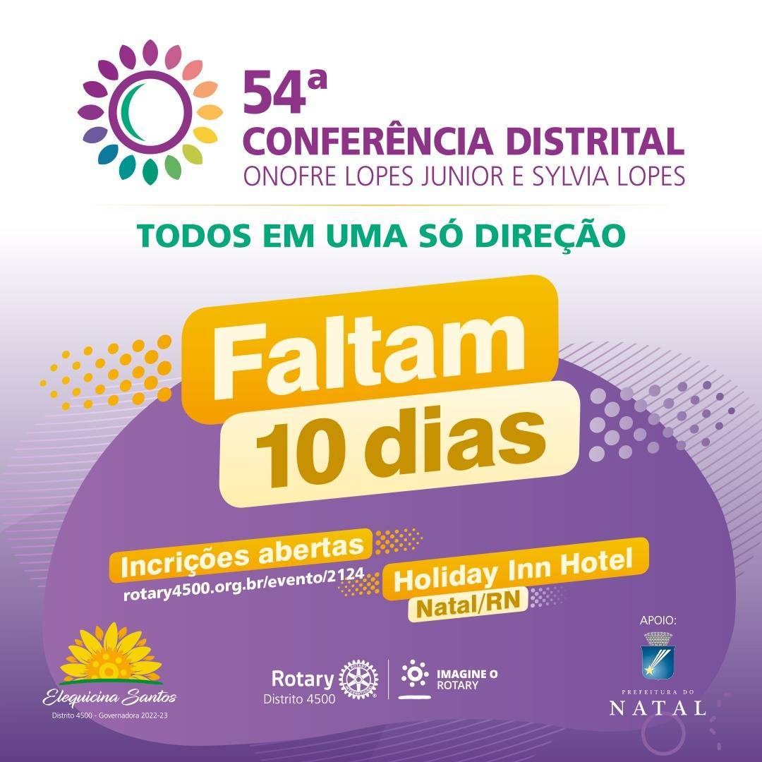 Faltam 10 dias para nossa 54ª Conferência Distrital TODOS EM UMA SÓ DIREÇÃO. Você já fez sua inscrição?