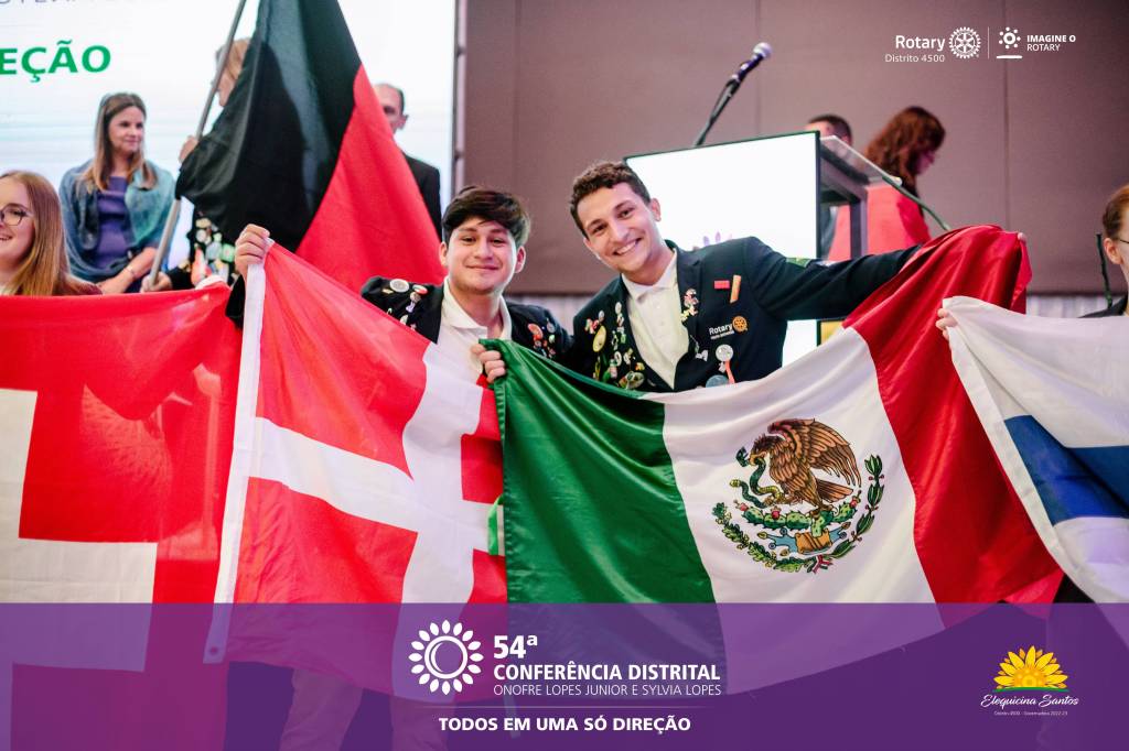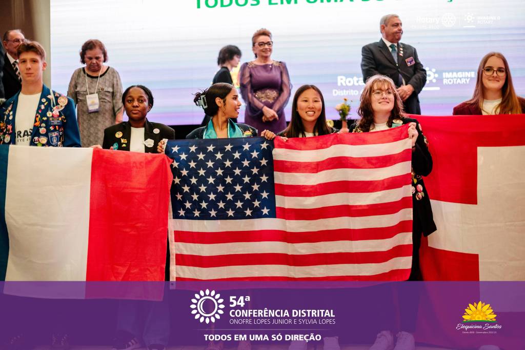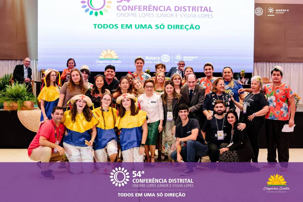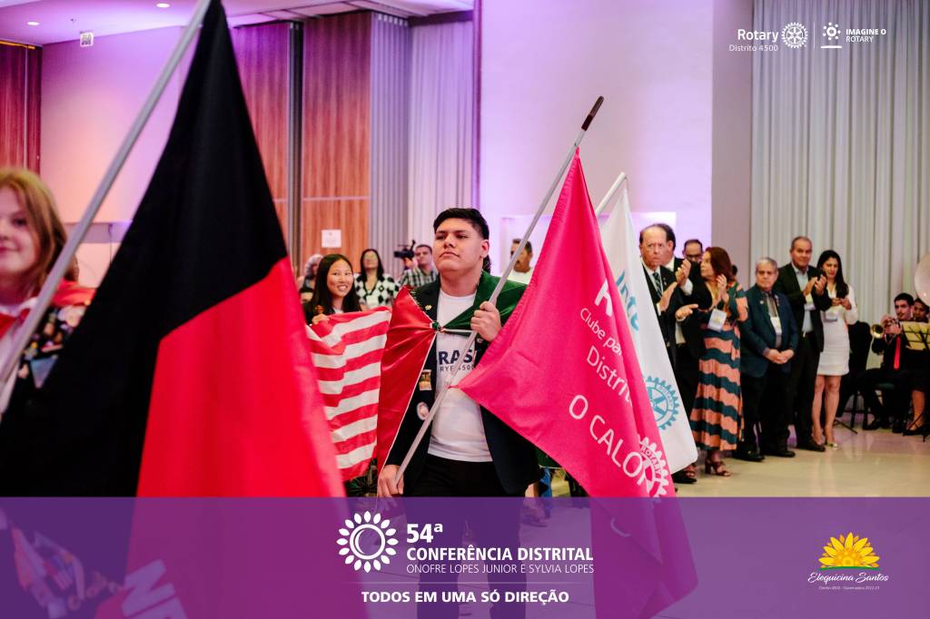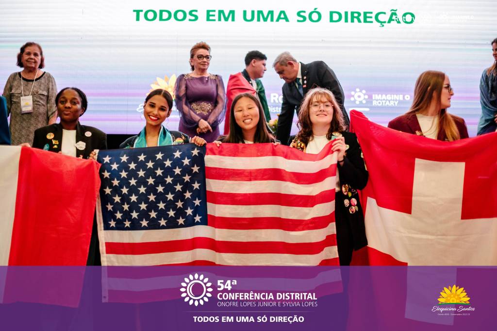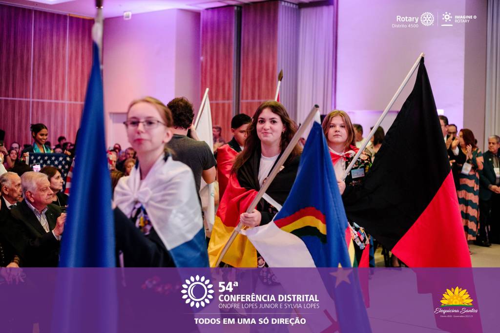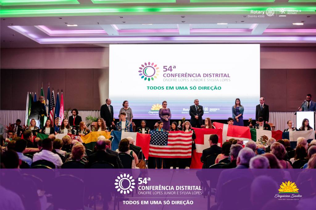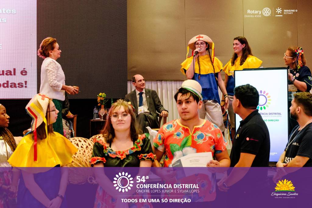 Outro ponto alto de nossas Conferências é a participação dos intercambistas. Na 54ª Conferência Distrital não poderia ser diferente. Na noite de abertura nossos intercambistas entraram c/ as bandeiras de seus países e dos estados integrantes do Distrito 4500. Já no sábado à tarde foi o momento da apresentação cultural, em que os estudantes demonstraram, através de uma coreografia, um pouco do que vivenciaram no Nordeste do Brasil. É sempre emocionante ver a imersão cultural proporcionada pelo Rotary, além do envolvimento das famílias e da integração social promovida entre os intercambistas. Parabéns à toda a equipe @rye4500 pela bela apresentação!