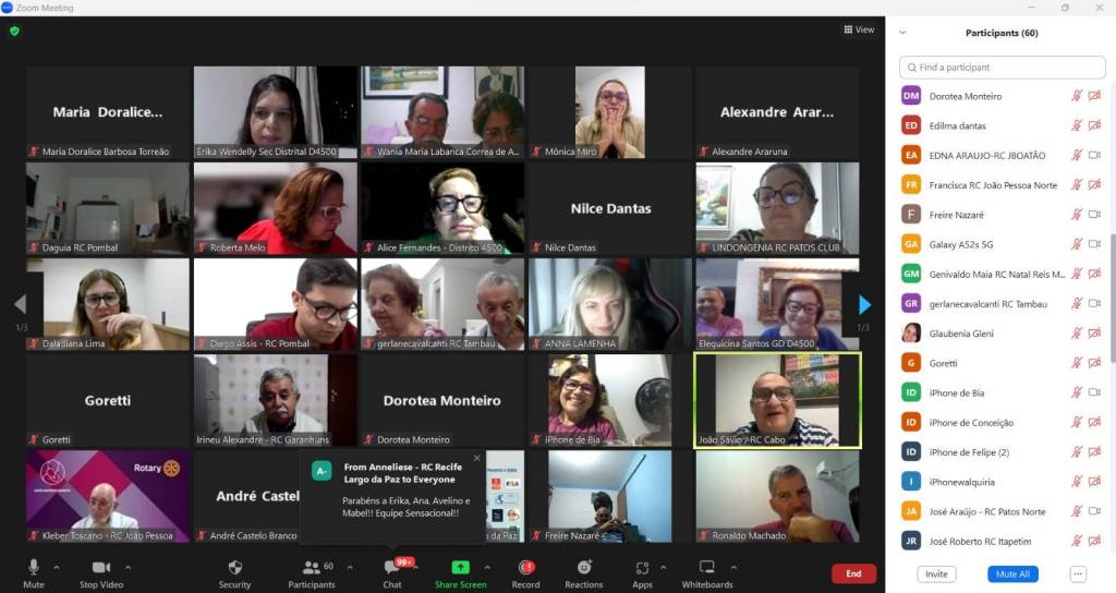 E fizemos ainda nosso ENCONTRO DA GRATIDÃO, p/ entregar mais homenagens e premiações, porque nosso #Distrito4500 merece! Tivemos homenagem às lideranças femininas, à equipe distrital, clubes que se destacaram por ações inovadoras, foi muita emoção. Tivemos mais de 100 pessoas simultaneamente na nossa sala virtual.