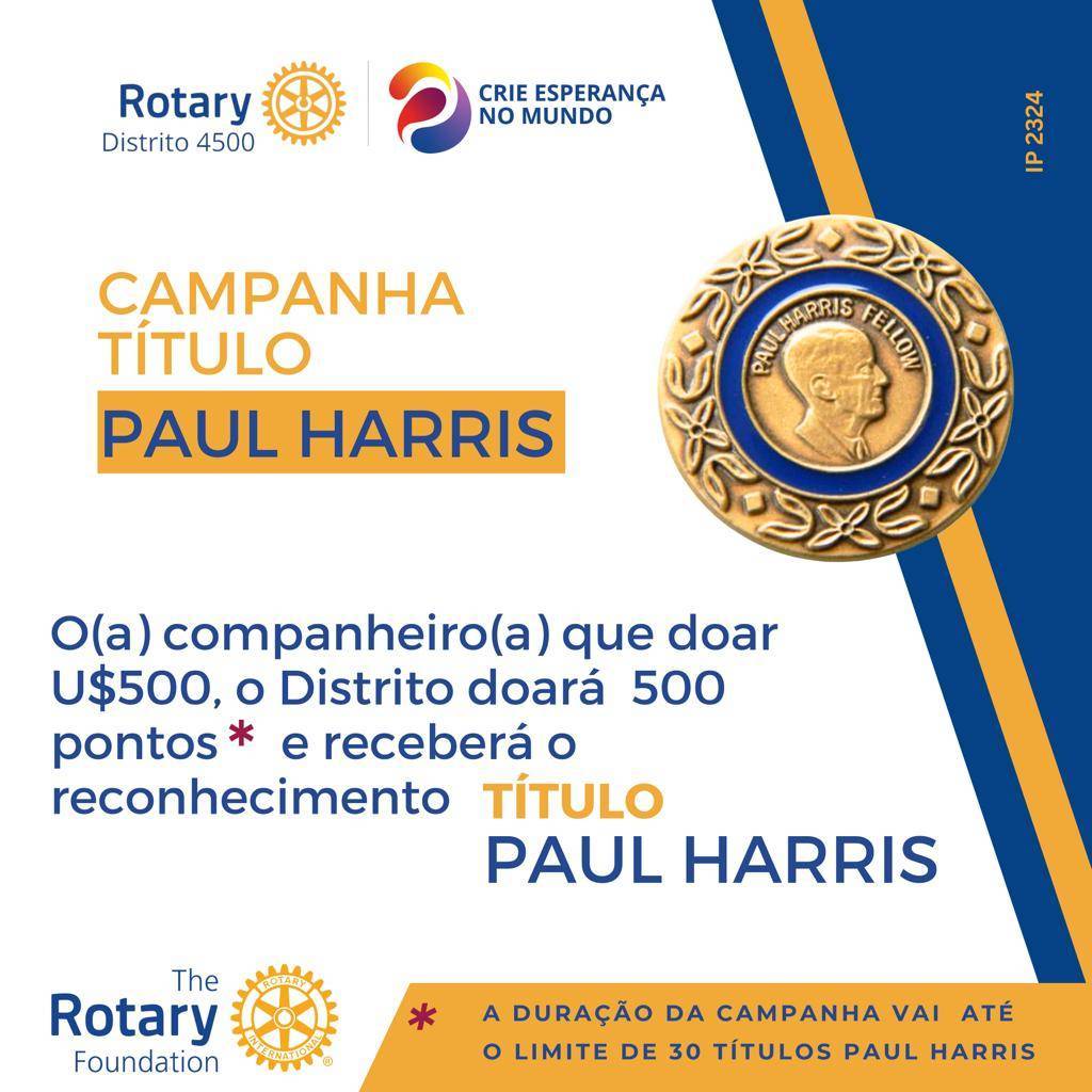 A duração da campanha vai até o limite de 30 títulos Paul Harris.