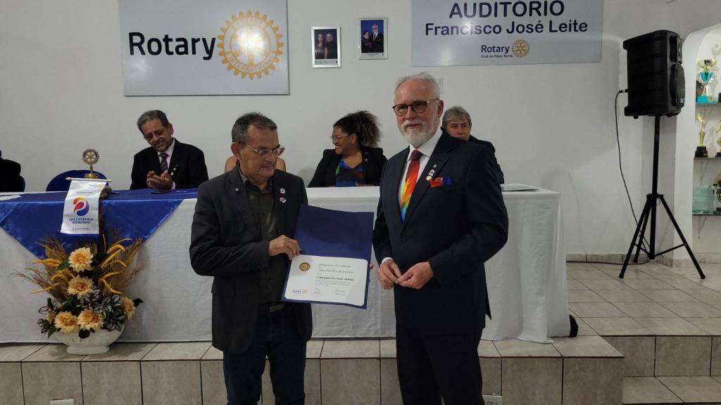 À noite, a plenária ocorreu com os RCs de Patos, de Patos Sul e de Patos Norte, e durante a solenidade o companheiro Antônio Bezerra, foi empossado como Segundo Tesoureiro. O Presidente José Araújo e o companheiro Josimar Barbosa, do RC Patos Norte, receberam das mãos do governador o título Paul Harris, conquistado na gestão passada.