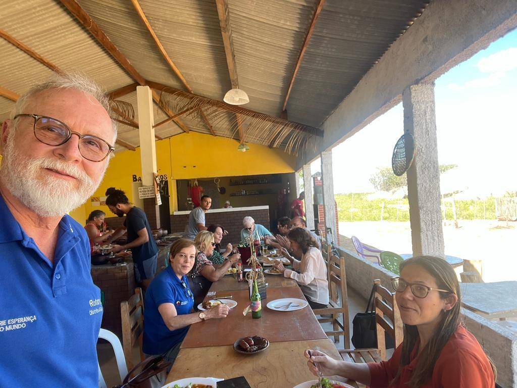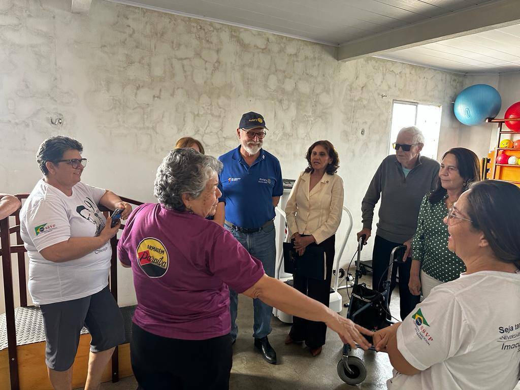 Logo na chegada fizeram fotos no marco rotário e seguiram para conhecer um abrigo de idosos apoiado pelo clube. Lá encontraram um espaço bem cuidado, onde os idosos são tratados com cuidados e carinho, entretanto carentes de ajuda.