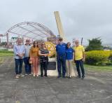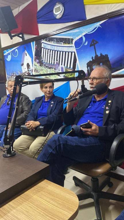 Após a foto no marco rotário, o casal governador foi levado à rádio FM Sete Colinas para entrevista com famoso radialista local.