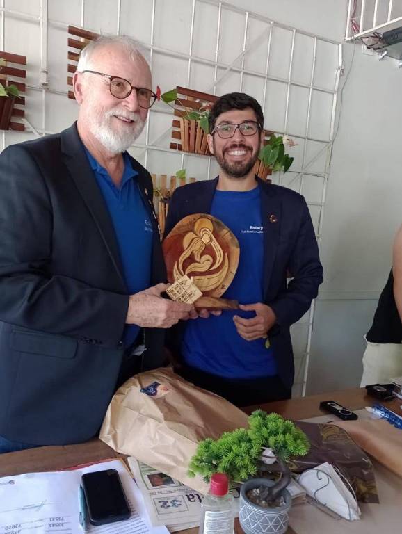 A visita iniciou com uma animada foto no marco rotário contando com a presença de vários rotarianos. Logo após o governador é levado à Rádio Papacaça para conceder uma entrevista, quando o governador chamou a população a participar da corrida contra a pólio, em 22/10/23 e explicou sobre a empresa cidadã.