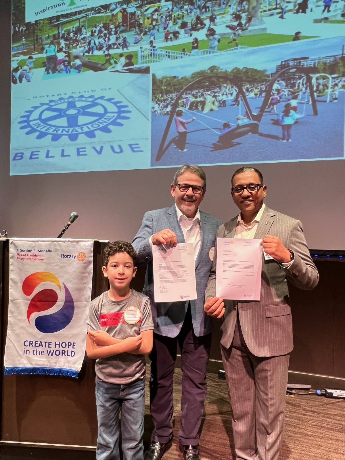 Na última semana de agosto, o Presidente do RC Recife Casa Amarela, Marcus Gallo, esteve visitando o Rotary Club Bellevue no Estado de Washington para conhecer o Projeto Inspiration Playground. Na ocasião foi entregue Carta do Governador Miranda, dando início a parceria para o Inspiration Playground. O companheiro Marcus Gallo foi recebido pelo Presidente Jemal Idris. O Inspiration Playground surgiu da experiência de um dos membros do Clube trabalhando com crianças deficientes no Nepal. Ele descobriu que as crianças que brincavam não apenas perto umas das outras – mas que brincavam umas com as outras – pararam de se ver como diferentes e apenas se viam como amigas.