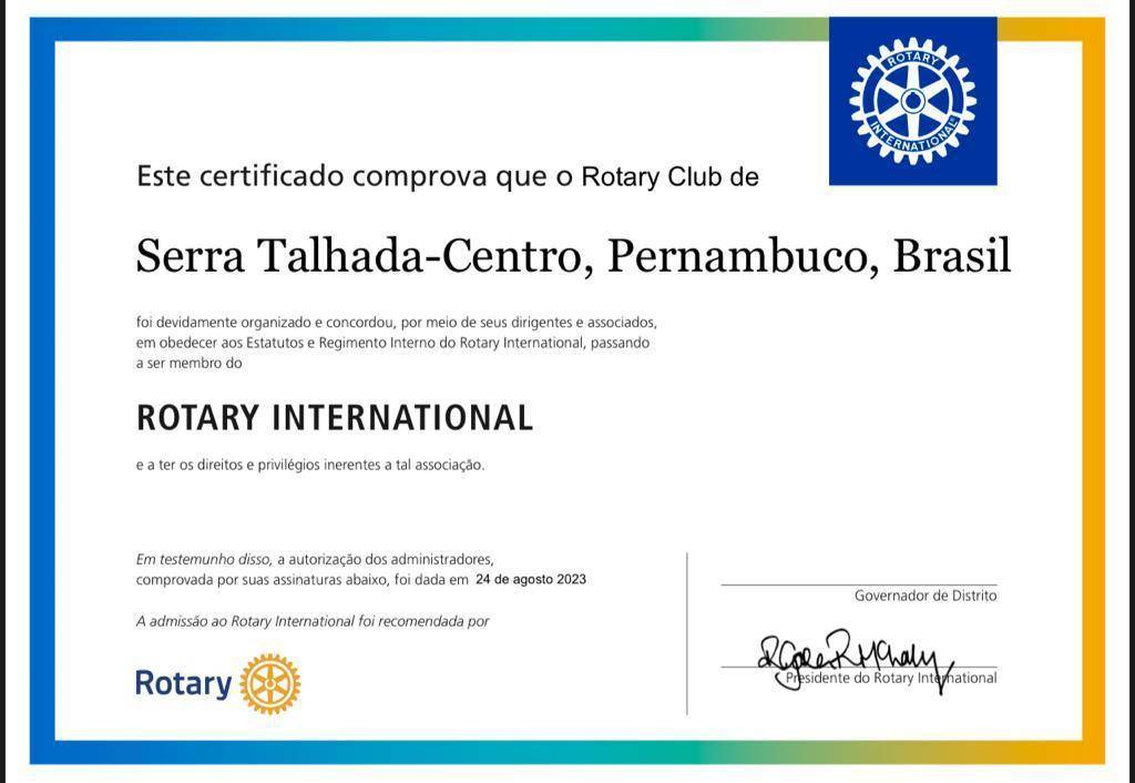 Em 24 de agosto, o Rotary International oficializou a criação do Rotary Club de Serra Talhada-Centro.