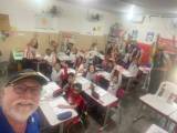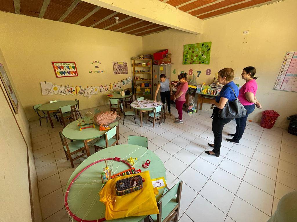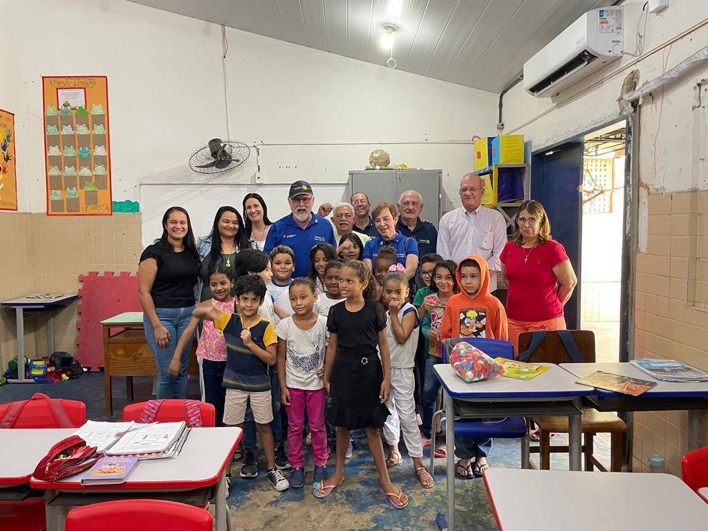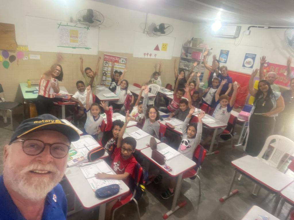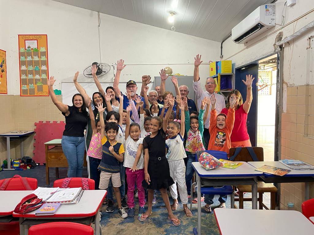 Após a foto no marco rotário, o casal governador visitou os projetos sociais apoiados pelo Clube. Em primeiro lugar, a Escola Rotary Pro Menor, que funciona em prédio do RC Olinda Norte e atende mais de 400 crianças dos anos iniciais do ensino fundamental, inclusive algumas com necessidades especiais.
