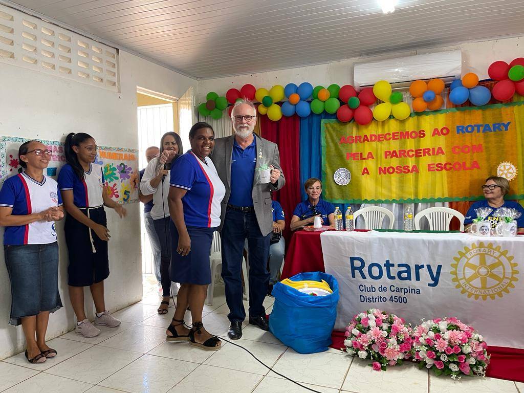 O formato de companheirismo foi discutido e o Governador sugeriu convidar amigos com perfil para serem rotarianos. O Governador explica, especialmente aos jovens associados, como funcionam os projetos de subsídios globais e distritais e como a Fundação Rotária arrecada recursos para os projetos. Fala, também, como funciona a Empresa Cidadã e mostra aos presentes o selo adquirido pela empresa ao participar do programa. Na ocasião da reunião técnica, o Governador entrega os talões da doação premiada e, com o compromisso de efetuar a doação do total dos talões, o clube recebeu uma roda dentada para a instalação de um marco rotário naquela cidade. O Governador sugere, ainda, que o clube peça 10 talões extras da doação premiada, permitindo que o clube use 60% da doação efetuada, dos citados talões, para a aquisição do parque infantil da escola. O Governador comprometeu-se com uma doação de R$ 1.100,00, de recursos próprios, para completar o valor.