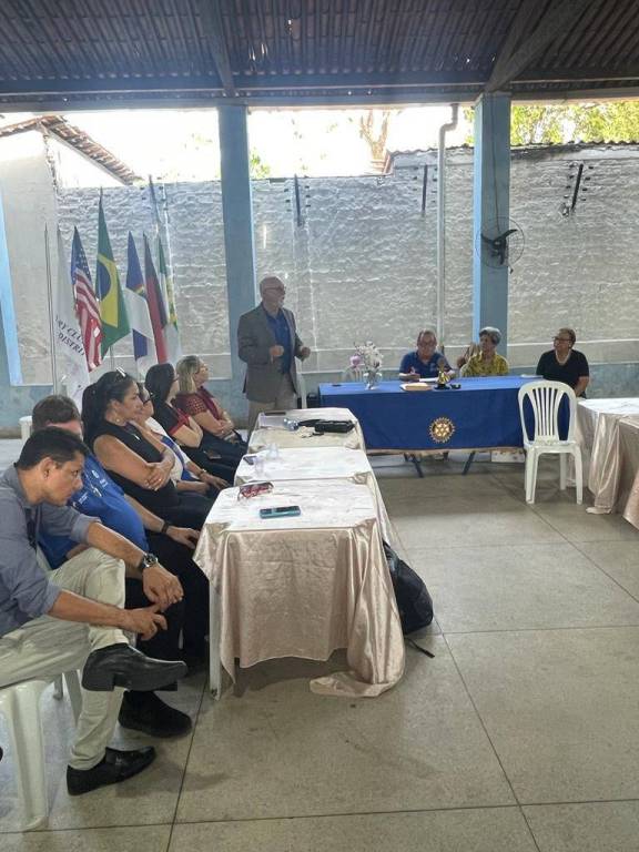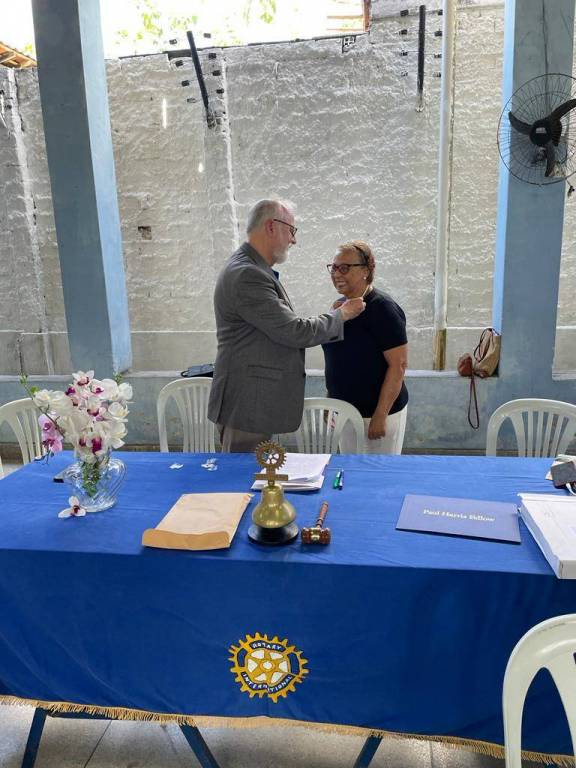 Após o almoço foi feita uma reunião plenária com a posse de duas novas associadas e a entrega de um Título Paul Harris ao presidente do clube e uma safira para sua esposa, Júlia Chalegre.