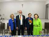 À noite, rotarianos, familiares, convidados e o casal governador reuniram-se na excelente sede do clube, antes sede da Casa da Amizade, quando houve uma plenária com posse do novo associado e a fala do Governador com muito entusiasmo e alegria.