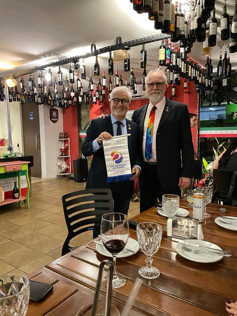 À noite em jantar de companheirismo, com a presença de rotarianos do clube e do RC João Pessoa Manaíra, tomou posse um novo associado.