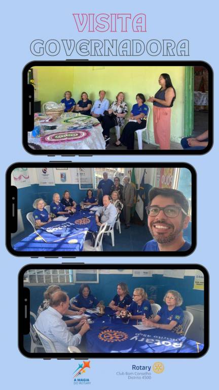 No dia 12 de agosto de 2024, o Rotary Club Bom Conselho recebeu o casal Governador Alice Cavalcante Fernandes e João Laércio G. Fernandes, acompanhados da Governadora Assistente, Neide Brandão. Os sócios de nosso clube que puderam se fazer presentes foram: A presidente do Clube – Cleide Alves; o Pas-president e atual Presidente da pasta de Juventude – Artur Sampaio; o Presidente da Comissão Fundação Rotária – Renato Curvelo; a Presidente de Protocolo Christina Curvelo; o Presidente da Comissão de Meio Ambiente – Manuel Marcelo; o Presidente da Comissão do Quadro Associativo – Luis Carlos e a sócia Ieda Pessoa. Inicialmente os companheiros foram recepcionados no Marco Rotário de nossa cidade, às 10:00 da manhã. Seguindo em direção para a Rádio Papacaça FM, onde tinham uma entrevista agendada para às 11 horas, no Programa Papacaça Debate. Após a entrevista todos foram para o companheirismo, onde seguiu-se um almoço descontraído no Restaurante Bistrô. Após esse momento foi realizada uma reunião na sede Administrativa do Clube, onde a Presidente Cleide pode apresentar seu Plano de Metas e ouvir as determinações e orientações da governadoria a respeito das obrigações do clube. Encerrada a reunião, os presentes dirigiram-se a sede a AMBEM – Associação Mista pelo Bem Estar da Mulher – onde planeja-se como meta desta gestão tornar este espaço num futuro NRDC. Os rotarianos foram recepcionados por toda a equipe dessa Associação e na ocasião houveram muitas discussões e esclarecimentos sobre a finalidade de um clube de Rotary na sociedade. A programação encerrou-se às 16:00 horas.