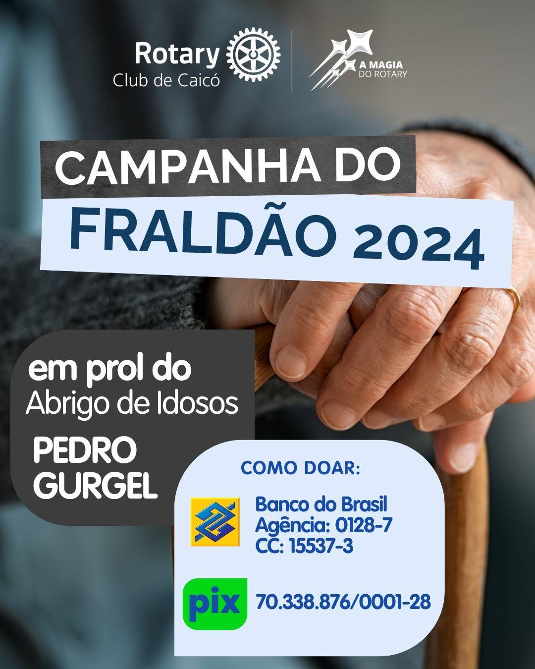 Pelo 16º ano consecutivo o Rotary Club de Caicó realiza a Campanha do Fraldão 2024 em prol do Abrigo de Idosos Pedro Gurgel. A ação solidária busca arrecadar fraldas geriátricas para os idosos assistidos pela instituição, que há anos presta apoio a pessoas da terceira idade em situação de vulnerabilidade.