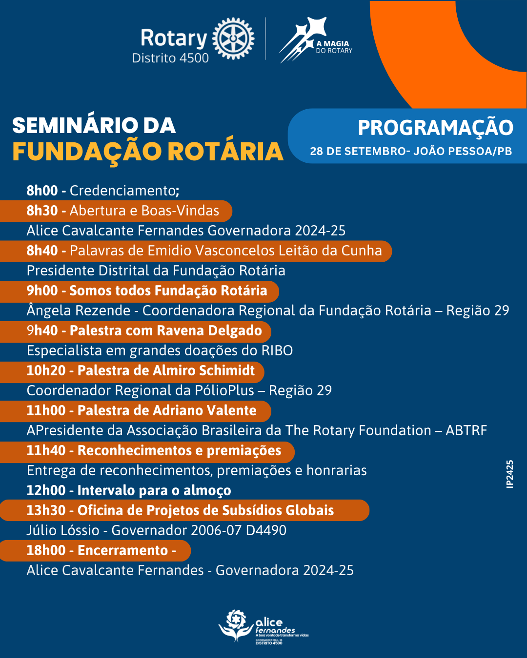 Definida a programação oficial do Seminário da Fundação Rotária em João Pessoa/PB