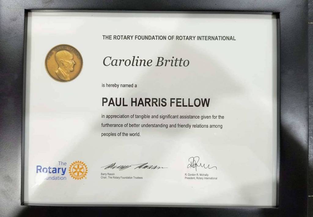 A jovem intercambista Caroline Britto do Rotary Club do Recife (Distrito 4500), recebeu o Título Paul Harris em reconhecimento ao seu desempenho no programa de intercâmbio internacional.