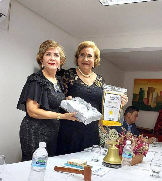 Um dos momentos marcantes foi a posse do novo sócio-representativo, João Alberto da Cunha Filho, que recebeu o distintivo das mãos da governadora Alice Fernandes. Além disso, a associada Wilma Alves Lima foi homenageada com o título de Companheira Paul Harris, entregue por Emídio Cunha.