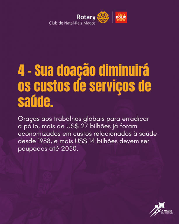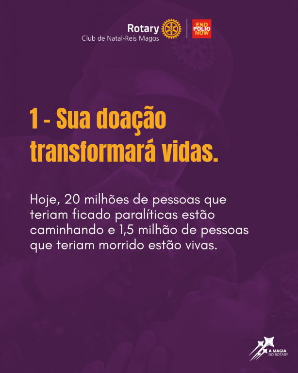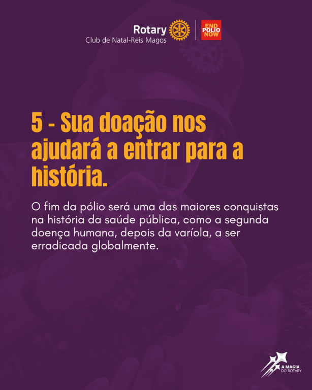 causa da poliomielite. Hoje, o Rotary e seus parceiros reduziram em 99,9% a incidência da
