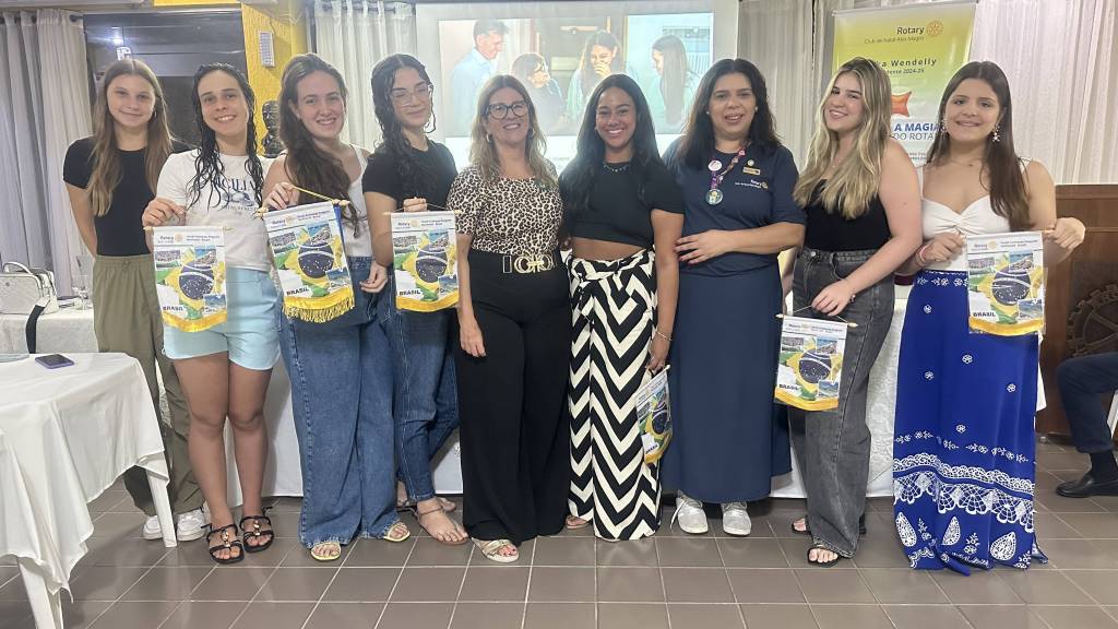 As estudantes receberam das mãos da Presidente Érika e de Daladiana as flâmulas e broches, para levarem em sua viagem e receberam orientações.